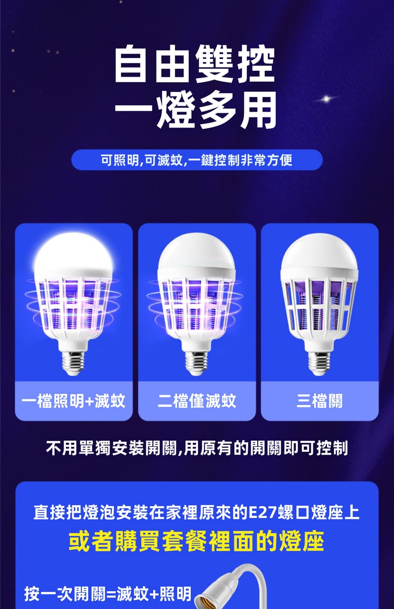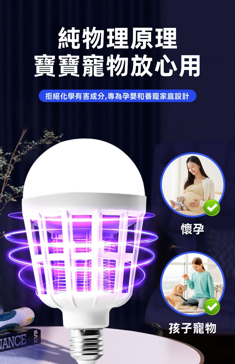 12分鐘前限時搶購 LED照明滅蚊燈E27螺口一擰即裝,UV紫光誘蚊,節能LED無頻閃,護眼超安全,居家戶外兩相宜 - 2入組-【買一送一】NT$999